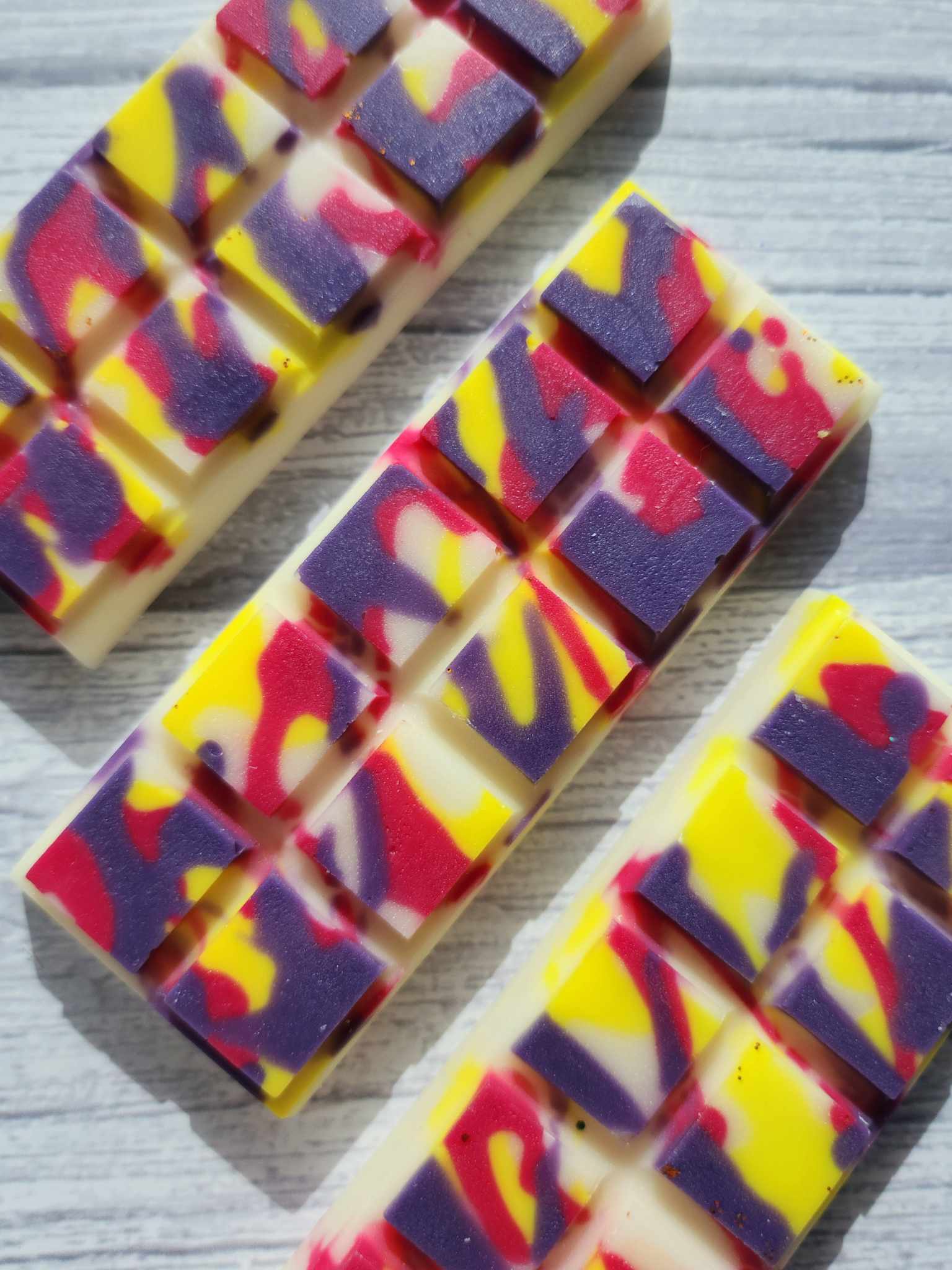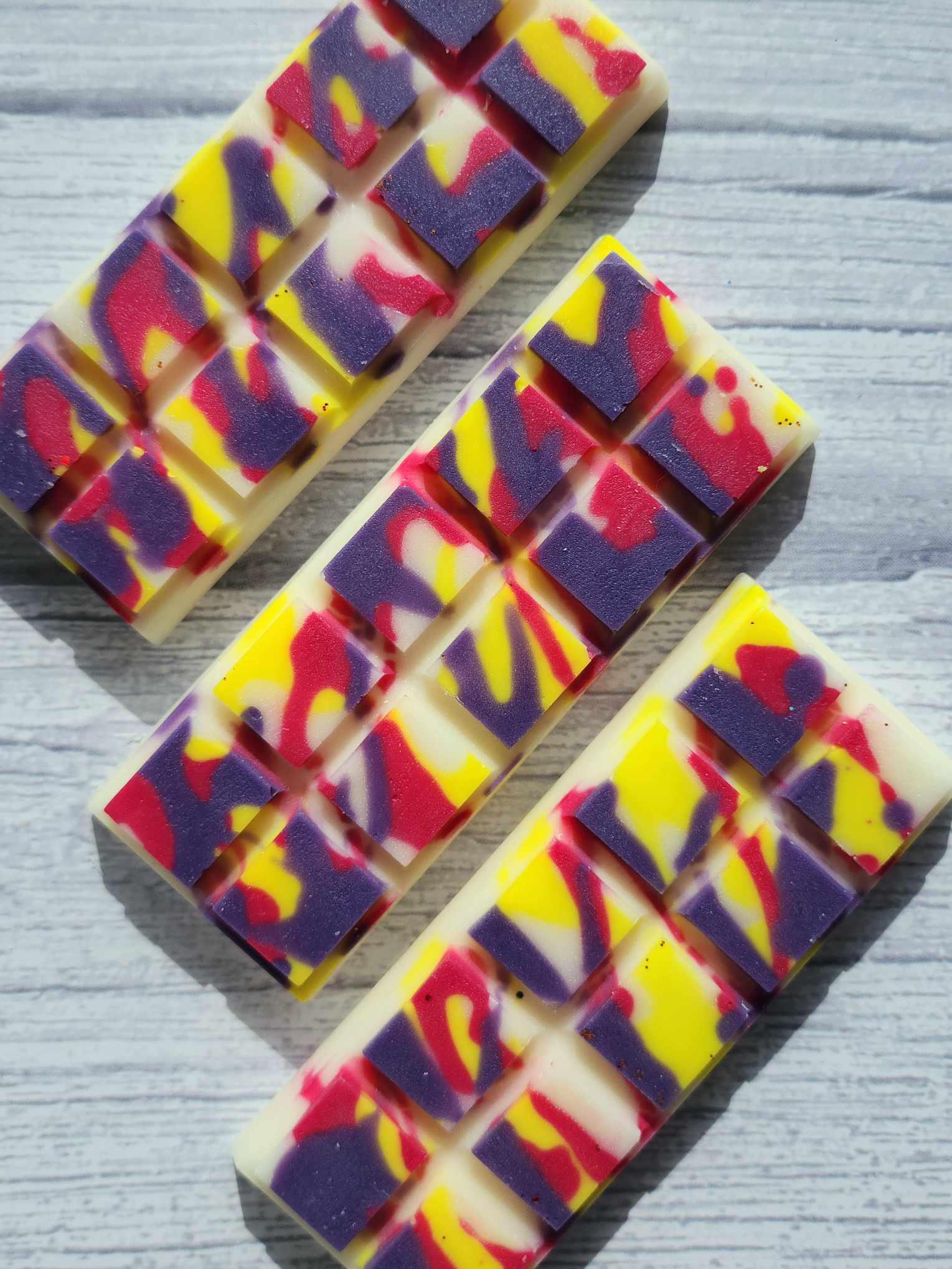 - Our wax melts are made in small batches, so appearances may differ from the product photos. Slight color changes and off-center labels may occur but these do not affect the quality of the wax melts.